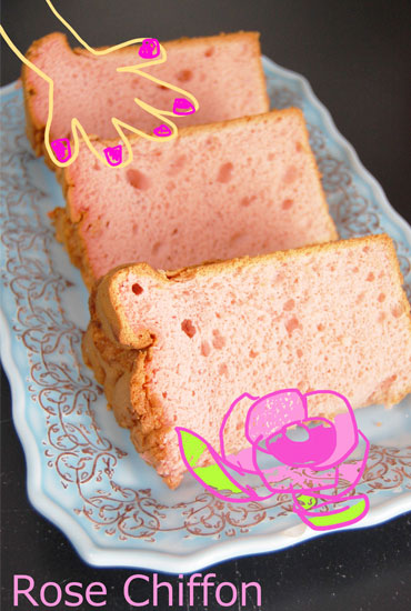しっとりふわふわ食感にバラのエレガンスな香りが漂うシフォンケーキ♪ 紅茶と相性抜群です。ちょっと大人のティータイムにいかがですか?