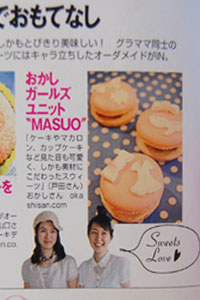 22.10月号のGLAMOROUS (講談社)におかしさんのデコラティブマカロンが掲載されています。おかしガールズユニットMASUOとして紹介もさせて頂きちゃっかりと二人も登場しています。 |