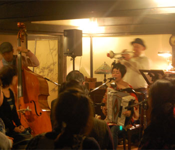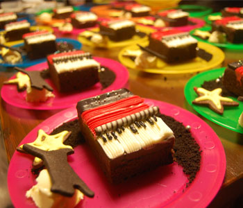 うりさんをイメージしたアコーディオンのチョコレートケーキにうりさんの好きな猫のビスケットをプラス。星が輝く夜空にミラクルヴォイスが響きわたり幻想的なライブでした。アコーディオンケーキはうりさんにもとても喜んで頂けたそうです。